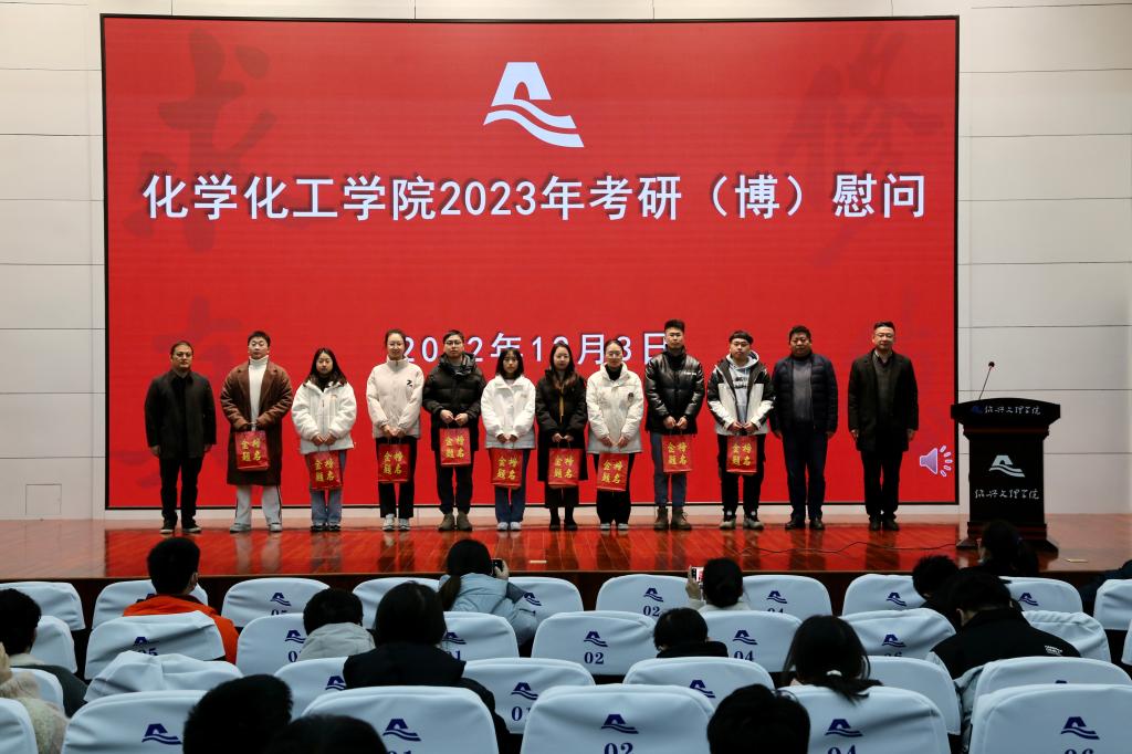 “老师,感谢您大学四年的帮助,我被浙江大学录取了。”“老师,在您和书记的帮助下,我决定接受调剂并被成功录取了。”“老师,我上岸了”……化学化工学院学院一直以来高度重视学风建设工作,以考研为抓手,将学风建设工作落细落小落实,通过系列举措,学院2023届毕业生中有53名同学被浙江大学、苏州大学、南京理工大学、南京师范大学、中国药科大学、Dalhousie University等国内外高校录取,研究生报考率90%、初试成绩上线率39.46%、升学率36.05%,报考率、上线率和考取率均创历史新高,实现自2018年以来升学率六连涨。优异成绩的取得离不开学生个人的刻苦努力,也离不开学院多措并举抓考研工作,更离不开学院对学风建设工作持之以恒的重视、探索与总结。