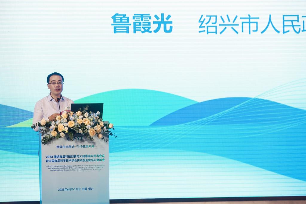 鲁霞光在致辞中代表绍兴市人民政府向来宾表示热烈欢迎。他指出,绍兴是一座以酒而兴、远近闻名的“酒城”。绍兴黄酒已有7000多年的历史,曾创下“越酒行天下”的辉煌,酿造技术入选国家级非物质文化遗产,绍兴也获得“中国黄酒之都”“世界美酒特色产区”荣誉称号。他表示,绍兴市委、市政府历来重视黄酒这一历史经典产业的传承发展,专门成立了黄酒产业发展振兴领导小组和专班,并在产品创新、品牌营销、企业整合、立法保护等方面综合施策。他强调,绍兴市政府坚持科技引领,积极引进高等院校科研机构企业创新的联合平台,依托国家黄酒工程技术中心、绍兴产业技术研究院,加强黄酒与大健康的相关性研究,进一步满足人们对健康生活的品质追求,不断用科技创新来赋能传统酿造产业的发展。