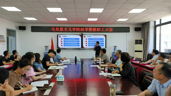 以教师为主力,深化学习走前列。“‘枫桥经验’不仅是马克思主义基本原理同中国具体实际相结合而形成与发展的重要经验,而且是马克思主义中国化时代化的理论成果。它既是引领中国基层治理创新发展的坐标,也是基层治理‘中国方案’的重要元素和组成部分”,马克思主义学院思想政治教育专业副主任周炫宇老师介绍了本次“开学第一课”主题的背景和意义。“60年来,‘枫桥经验’在实践中不断发展,焕发勃勃生机,成为基层社会治理的一面旗帜。坚持和发展新时代‘枫桥经验’是绍兴的责任和担当,讲好这次的开学第一课,让我们的同学能有更深刻的理解认识,并付诸于更自觉的实践行动”,集体备课会议上,马克思主义学院裘斌教授结合带领学生开展“枫桥经验”实践研学的体会首先发言。为深切感悟伟大思想的“源头活水”,在学懂弄通中“深化”、真信笃行中“内化”、闭环落实中“转化”,讲深讲透讲活新时代的“枫桥经验”,大家纷纷畅言。马克思主义学院经过主题征集、集中研讨、分组商议、说课展示后,发动全体思政课教师唱响“枫桥经验”的“马院声音”。