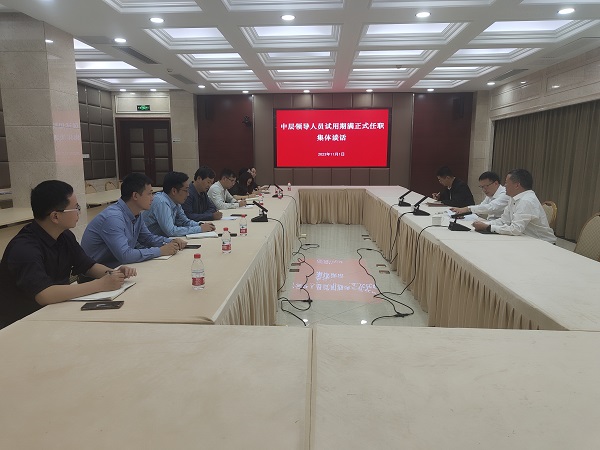 11月1日下午,学校召开中层领导人员试用期满正式任职集体谈话会。校党委书记汪俊昌,党委副书记沈赤组织部相关负责人,8名试用期满中层领导人员参加会议。会议由沈赤主持。