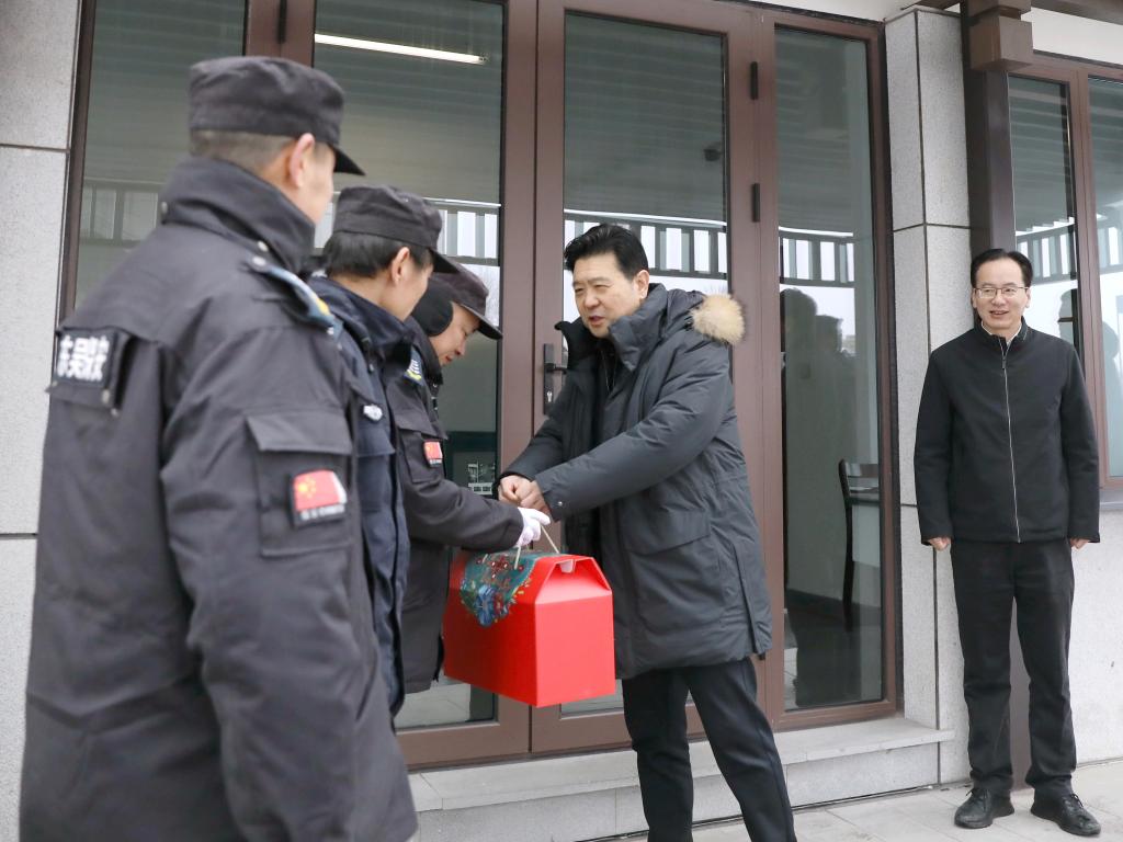 2月6日,甲辰龙年春节即将到来之际,校党委书记崔凤军看望慰问坚守在岗位上的教职工,送去了节日问候和新春祝福。校党委副书记张宏、黄坚,副校长赵浪平,党委委员、宣传部部长、办公室主任宋浩成一起参加慰问,办公室、工会等相关部门负责人陪同。