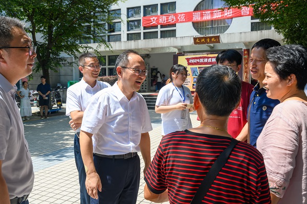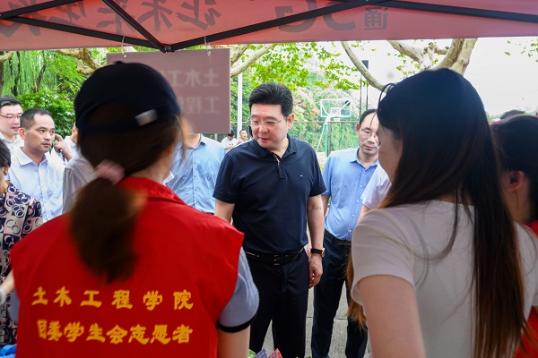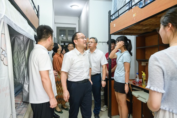 赵阳一行走访了河西、南山校区集中接待点,学生书院、南山餐厅等地,就后勤保障工作提出具体要求,与新生班主任进行交流,强调要进一步强调要抓好学风建设,做好开学第一课工作。赵阳详细了解新生报到情况,对新生提出殷切希望,鼓励同学们在校期间积极参与校园活动,享受大学生活。