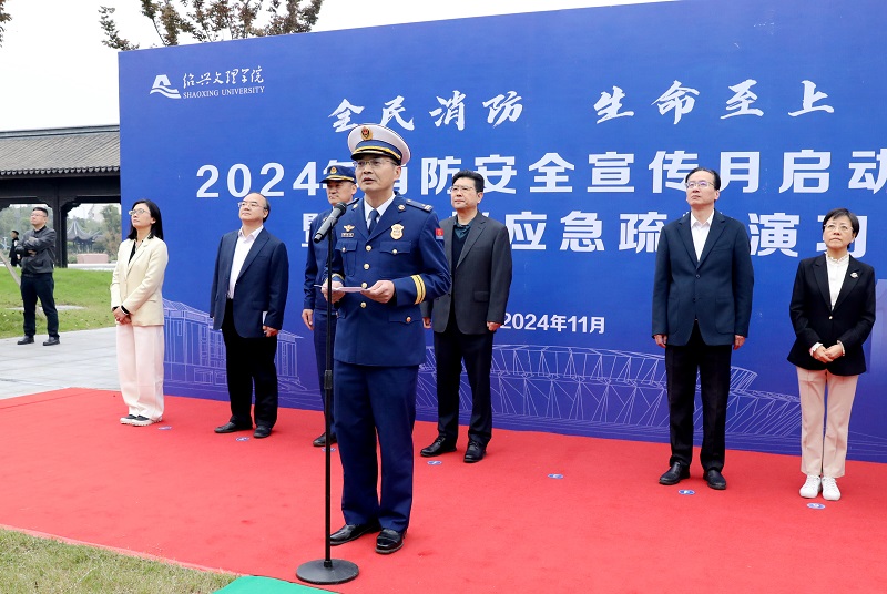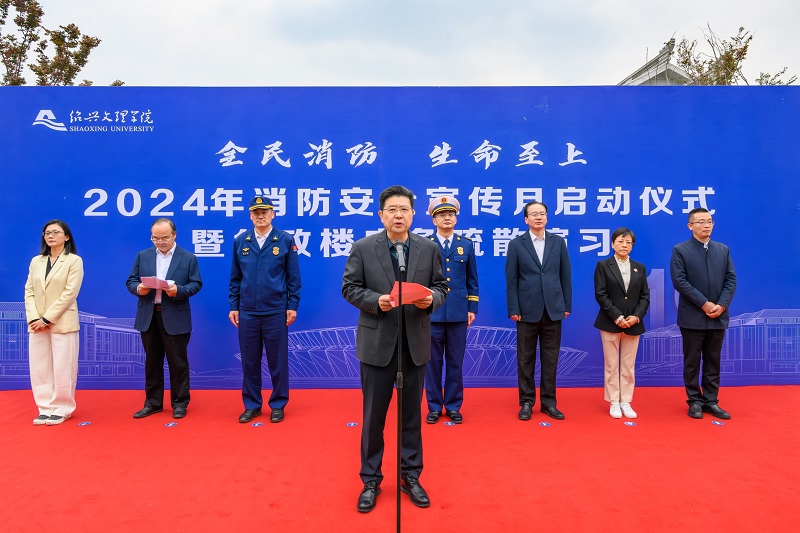 为进一步提升广大师生员工的消防安全意识和自防自救的能力,11月21日下午,学校举行2024年消防安全宣传月启动仪式暨行政楼应急疏散演习。校党委书记崔凤军,校领导张宏、黄坚、唐晓青、赵浪平、胡云进,绍兴市消防救援支队副支队长周小军,越城区消防大队副大队长翁史松到场观摩指导。启动仪式由校党委副书记黄坚主持。