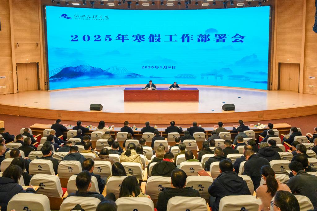 1月8日上午,学校在风则江大讲堂召开2025年寒假工作部署会,校党委书记崔凤军讲话,校长赵阳主持会议。学校党政领导班子成员、全体中层干部参加会议。