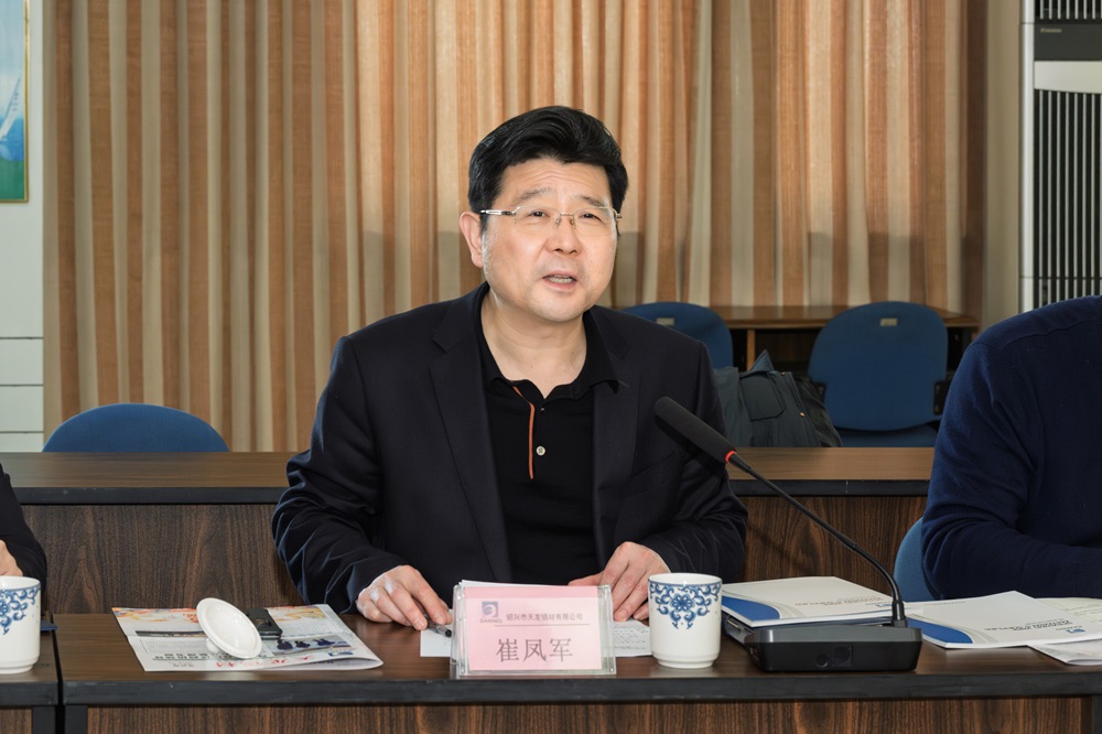 2月28日下午,校党委书记崔凤军一行赴绍兴市天龙锡材有限公司,与董事长戴国水、总经理戴登峰等座谈交流。副校长陈均土等参加座谈。