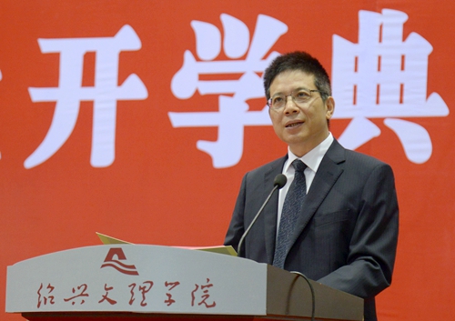 教师代表、浙江省优秀教师、绍兴市最美教师、化学化工学院许映杰,在校生代表、2016年中国机器人大赛全国一等奖获得者、机械与电气工程学院纪旭东,本科生新生代表、人文学院汉语言文学(师范)171班傅超丽,研究生新生代表、经济与管理学院工商管理1701班胡小芳,新生家长代表、医学院临床医学173班朱明了的母亲、我校92届校友黄燕萍分别上台发言,共同描绘对未来学习和生活的美好愿景。