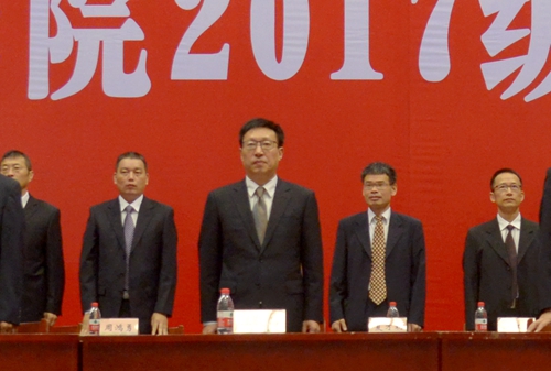 16个二级学院院长(书记)依次上台致辞,用一分钟简短而精彩的演讲赢得了阵阵掌声。他们寄语2017级新生,要充分利用大学四年的美好时光,明确学习目标,增强学习动力,勇于面对竞争,用洪荒之力,实现自己的人生理想。