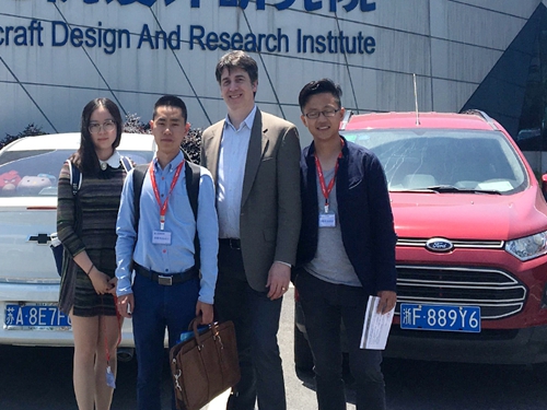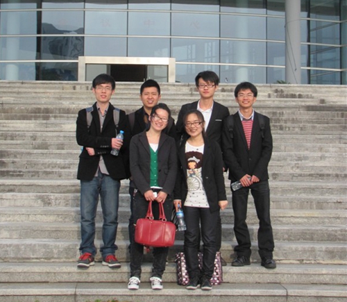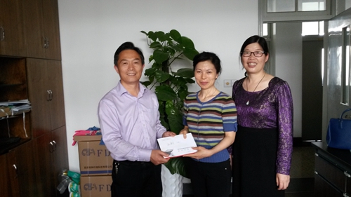 贾静,2013届毕业生,现在国家服装质量监督检验中心(上海)担任销售经理(左一)。