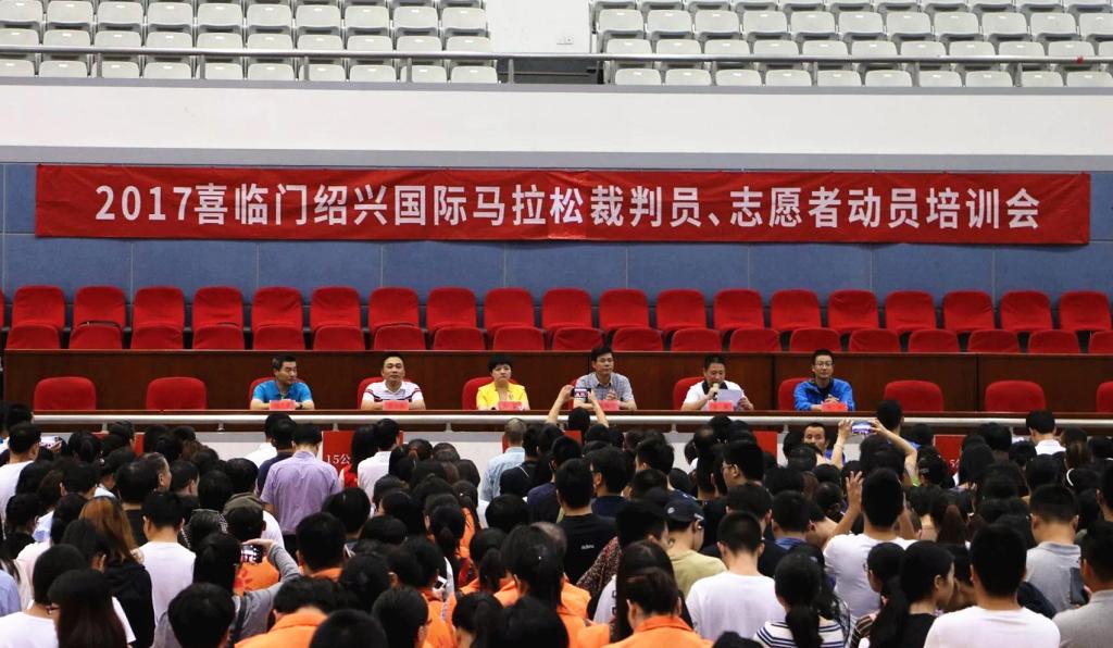 9月23日,2017中国·绍兴国际马拉松赛裁判员、志愿者动员培训大会在我校体育馆隆重举行。绍兴市体育局、团市委、校团委、厦门广电运营公司等领导,相关媒体记者以及约计300名裁判员、1400余名志愿者出席大会。