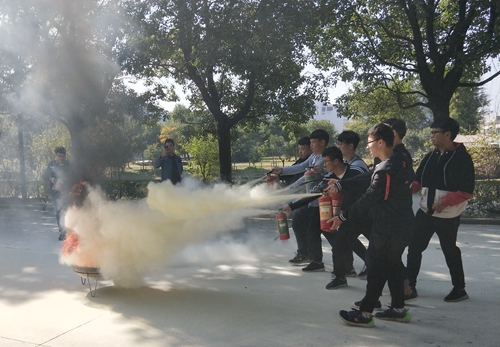 11月9日中午,建功书院新生齐聚南山校区元培南路,保卫处工作人员为在场的同学们认真讲解了消防基本常识、扑灭初期火灾的应对措施及灭火器处理火险的基本要领。