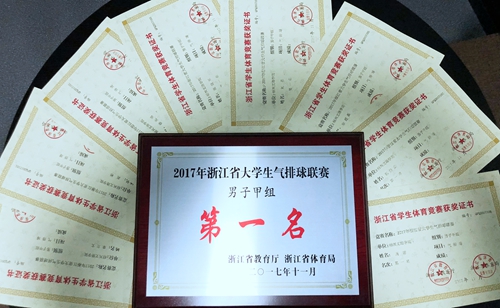 在11月12日结束的2017年浙江省大学生气排球联赛中,我校气排球队分别荣获甲组男子第一名、女子第三名。
