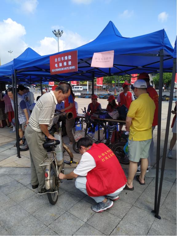 活动伊始,我校机械与电气工程学院学生田碧涵代表绍兴市志愿者作发言,分享了自己入校以来开展志愿服务的心路历程,展示了大学生志愿者高度的社会责任感和良好的精神风貌。活动期间,我校机械与电气工程学院和外国语学院联合开展的自行车维修、电脑维修、外文发音指导等服务项目吸引了众多市民前来体验。志愿者们热情接待,用心服务,受到众多市民好评。