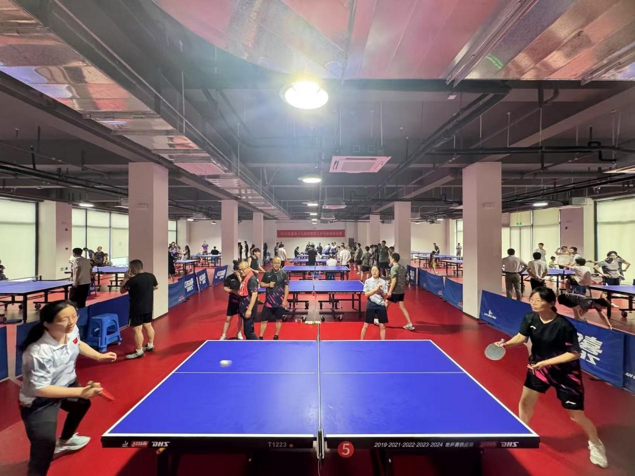 为配合落实好绍兴市总工会全市职工文体“双百引领”活动和我校“红五月”系列活动,校工会、校教工乒乓球协会积极组织开展2025年度第十九届校教职工乒乓球团体比赛。5月17日,来自各分工会的18支参赛队伍、200余名教职工在南山体育中心参加活动。